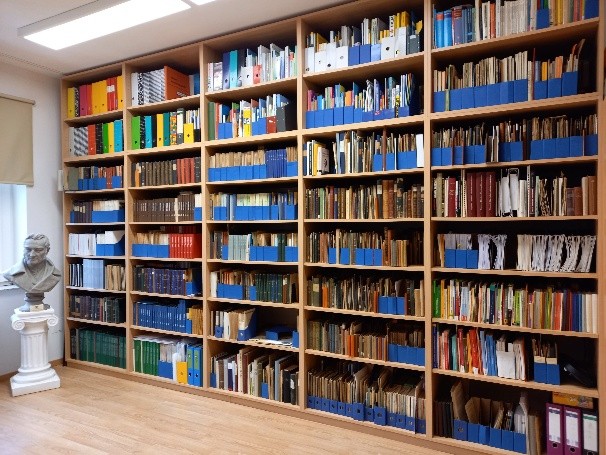 Ein neues wandfüllendes Bücherregal nimmt die meisten der 22 000 Werke umfassenden Stenografischen Fachbibliothek auf.