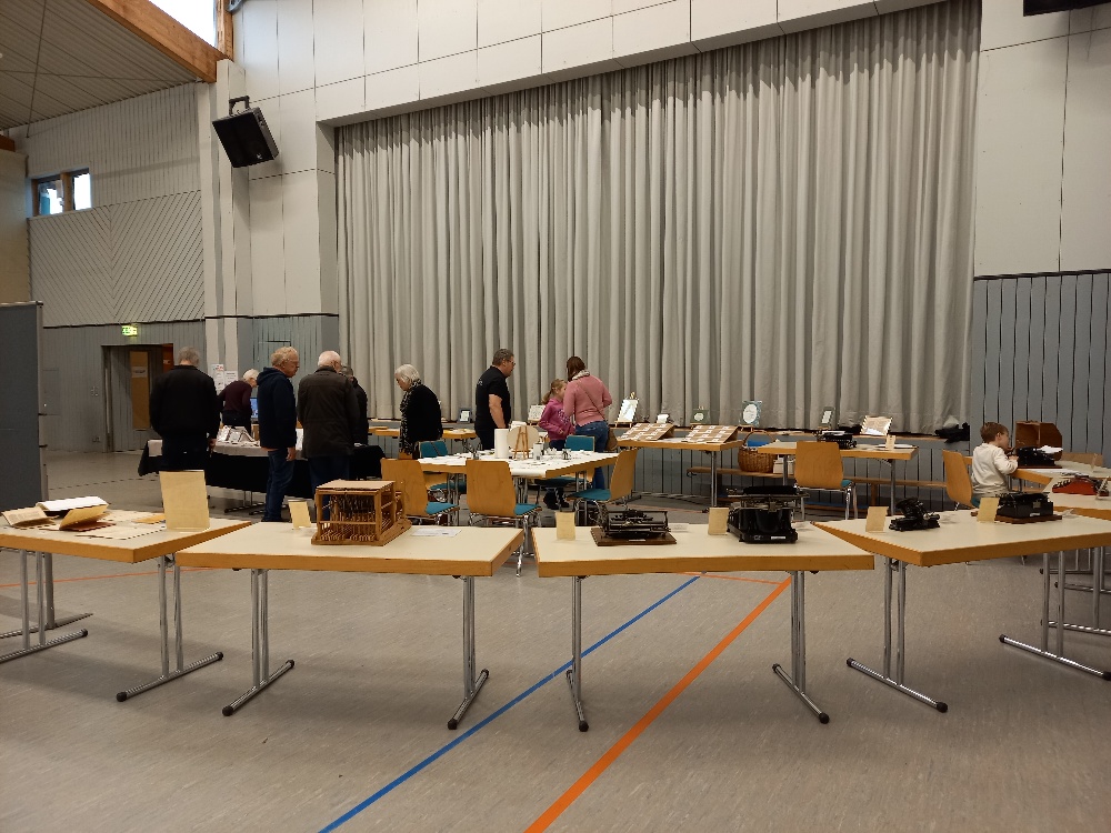 Zahlreiche Besucher/-innen bestaunten unsere Exponate in der Mehrzweckhalle, viele Kids probierten eine „Adler 7“ und eine „Mignon 4“ aus. Eine kleine Auswahl stenografischer Literatur umfasste die Zeit von 63 v. Chr. („Tironische Noten“) über das erste Stenografie-Lehrbuch in deutscher Sprache aus 1678 – basierend auf dem englischen System „Ramsay“ – bis zu den verschiedenen Systemurkunden und Lehrbüchern der Systeme „Gabelsberger“, Stolze-Schrey“, Deutsche Einheitskurzschrift“ und „Deutsche Kurzschrift in der DDR“ im 19. und 20. Jahrhundert.